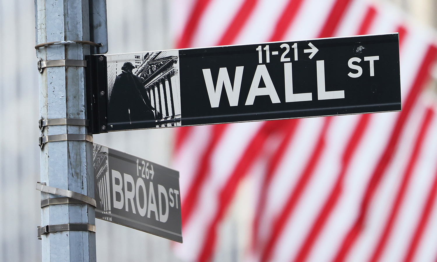 A Wall Street sign is seen outside of the New York Stock Exchange on June 8, 2022, in New York City. (Photo by Michael M. Santiago/Getty Images) The ...